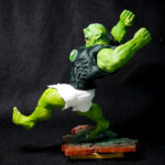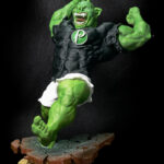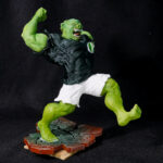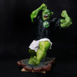 Produzida em plástico e resina, cada peça é pintada à mão, o que garante detalhes únicos e acabamento caprichado em cada unidade. A base com efeito de chão quebrado completa o visual, deixando a estátua ainda mais imponente.