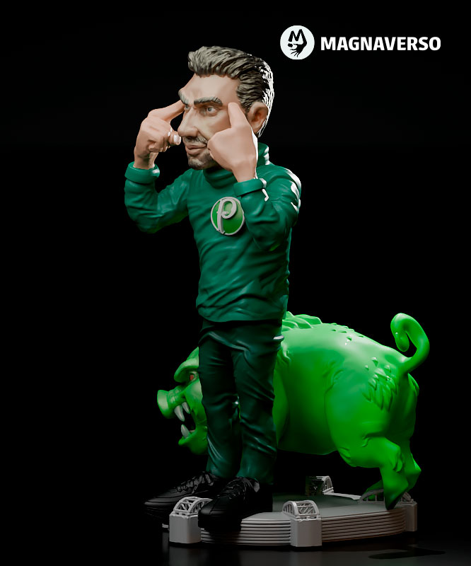 A Magnaverso apresenta uma homenagem única ao comandante da Academia! Esta escultura caricata de Abel Ferreira é um modelo exclusivo, criado com riqueza de detalhes para os verdadeiros palmeirenses.